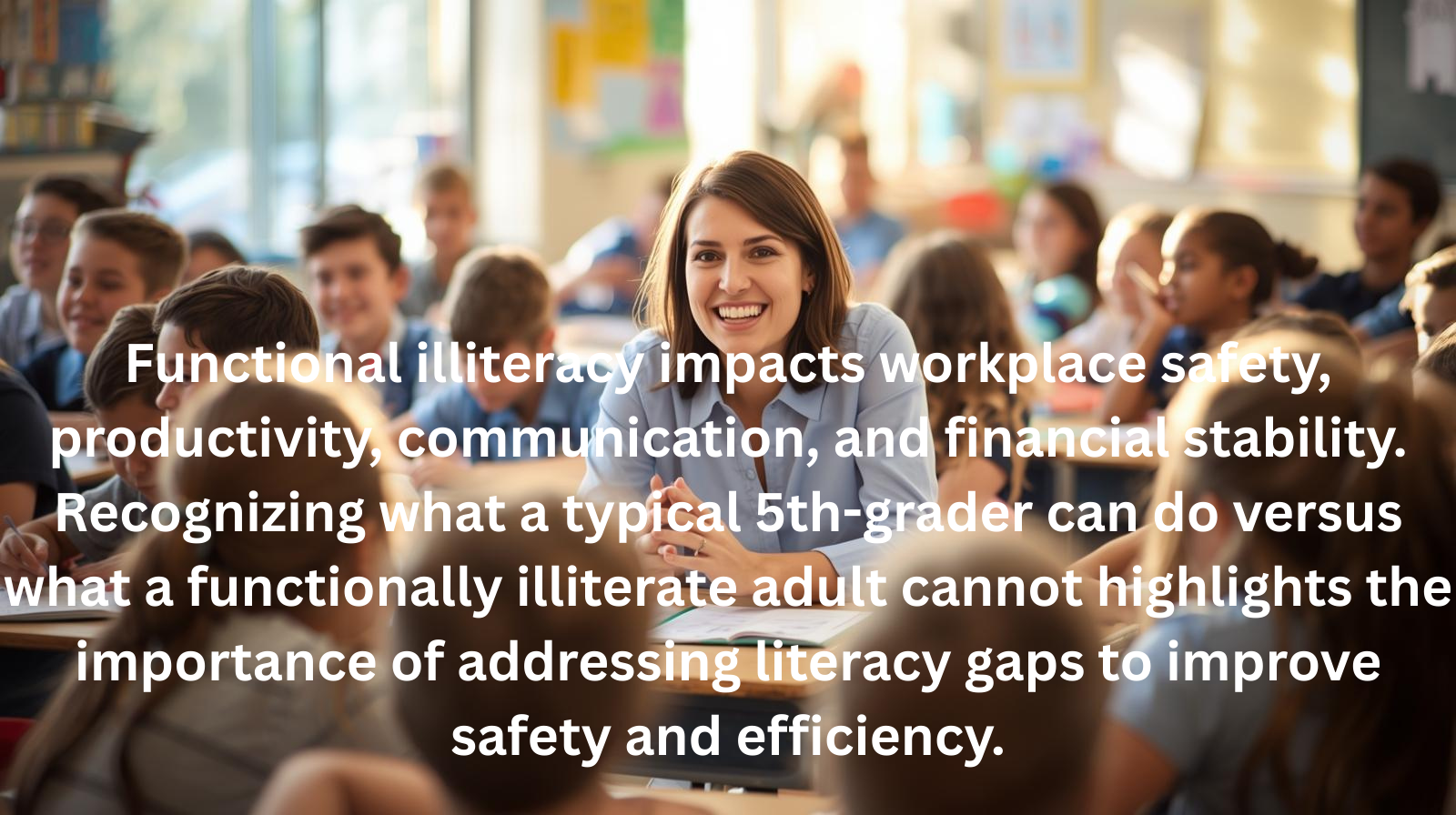 Functional illiteracy impacts workplace safety, productivity, communication, and financial stability. Recognizing what a typical 5th-grader can do versus what a functionally illiterate adult cannot highlights the importance of addressing literacy gaps to improve safety and efficiency.