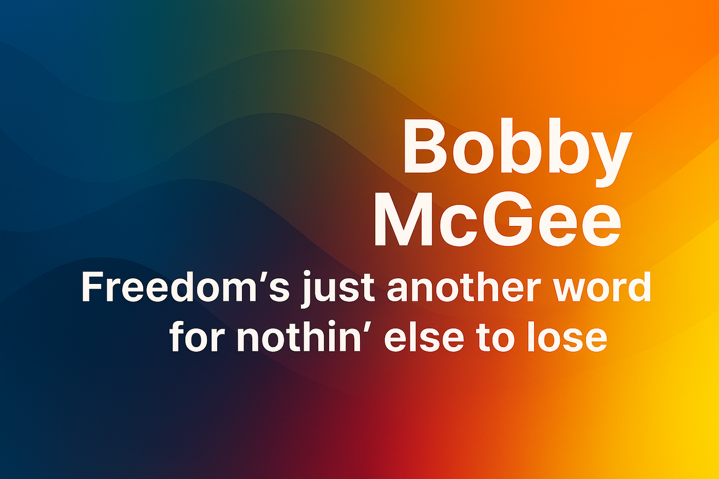 Bobby McGee and I endure because it captures the paradox of freedom: to gain it fully, we may have to surrender what anchors us. But when the road stretches empty and the sky feels too wide, we learn that freedom without connection is not always enough.