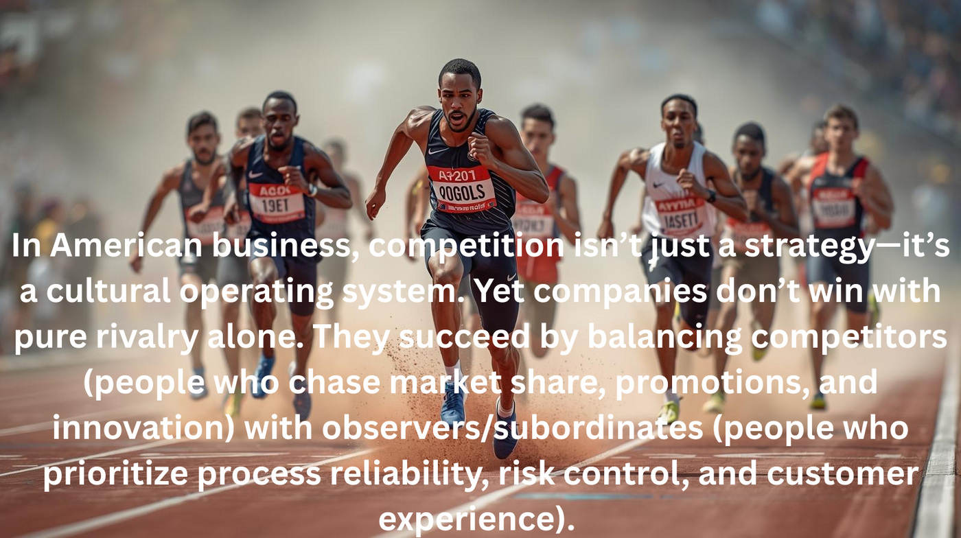 In American business, competition isn’t just a strategy—it’s a cultural operating system. Yet companies don’t win with pure rivalry alone. They succeed by balancing competitors (people who chase market share, promotions, and innovation) with observers/subordinates (people who prioritize process reliability, risk control, and customer experience).