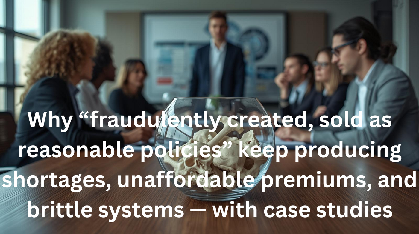 Takeaway for housing + insurance: the affordability crisis isn’t only “nature” or “greed.” It’s frequently a rulebook problem that either blocks supply (housing) or misprices risk and legal cost (insurance).