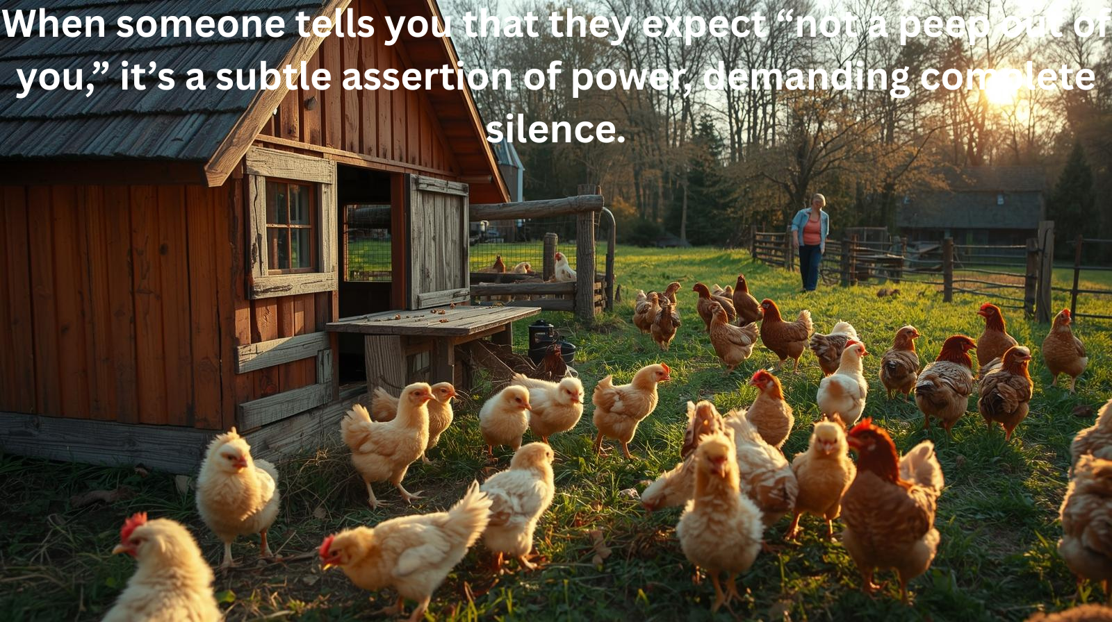 When someone tells you that they expect “not a peep out of you,” it’s a subtle assertion of power, demanding complete silence.