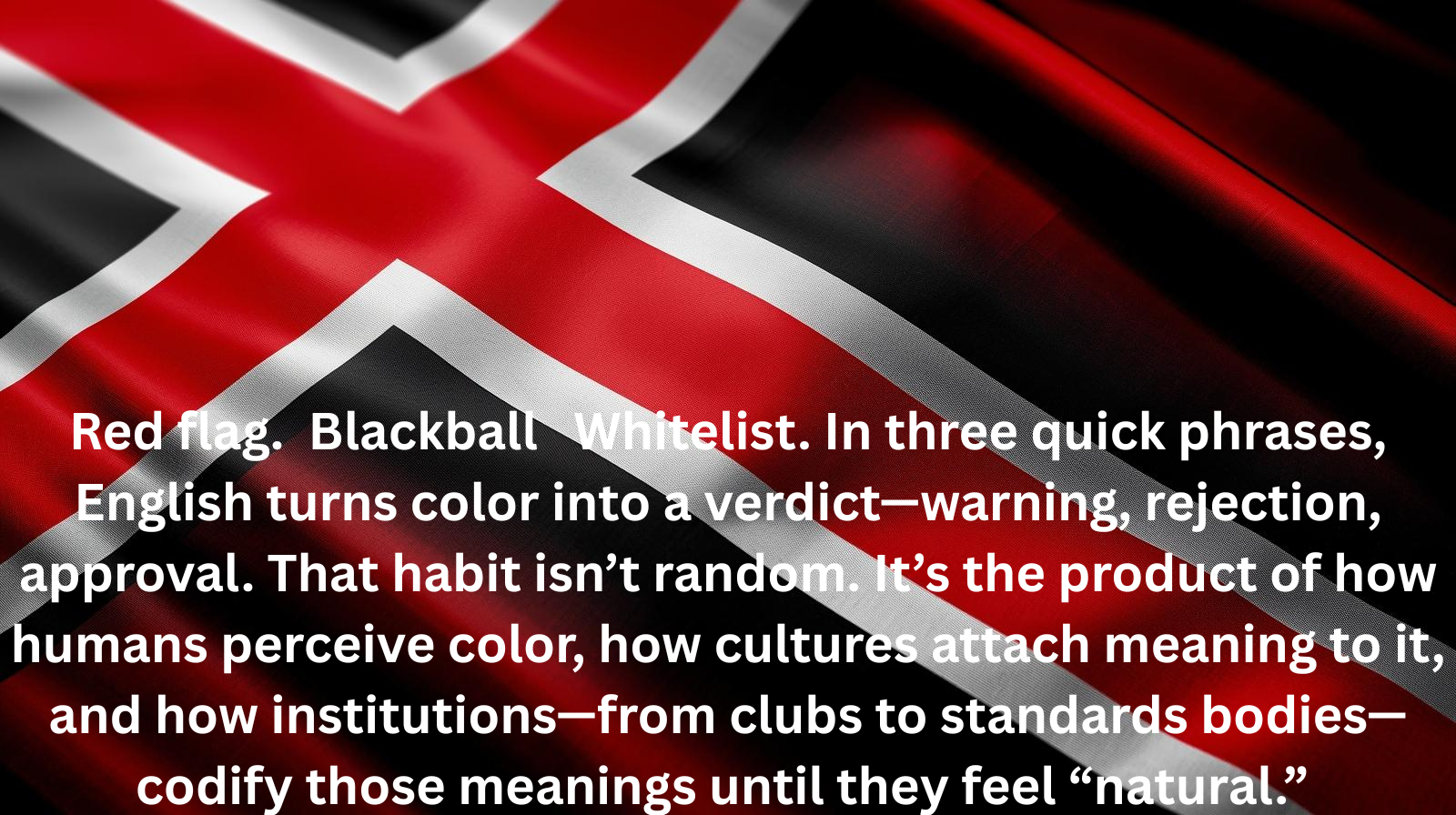 Red flag. Blackball. Whitelist. In three quick phrases, English turns color into a verdict—warning, rejection, approval. That habit isn’t random. It’s the product of how humans perceive color, how cultures attach meaning to it, and how institutions—from clubs to standards bodies—codify those meanings until they feel “natural.”