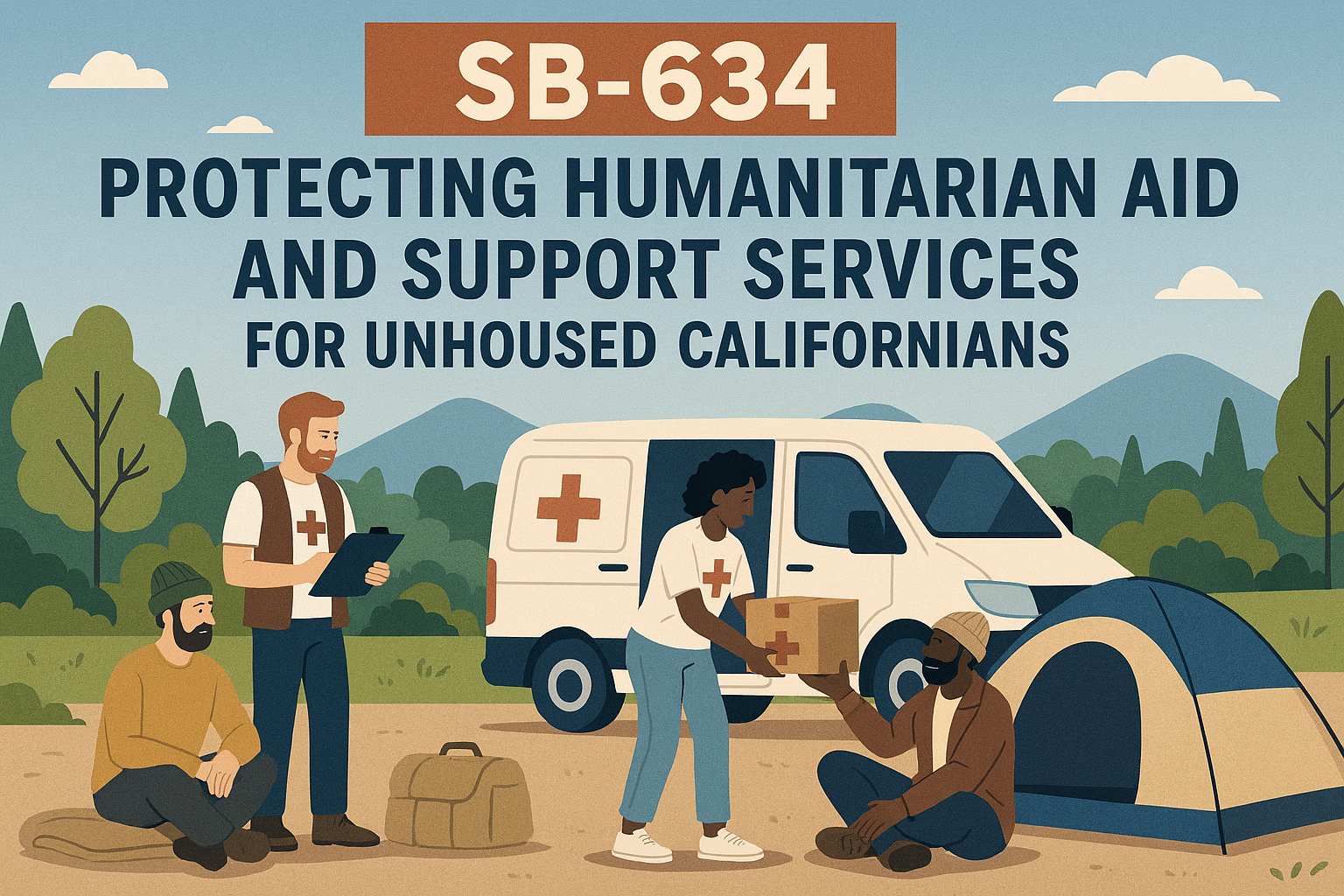 California continues to face a severe homelessness crisis, with over 187,000 people experiencing homelessness on any given night and more than 300,000 over the course of a year. In response, Senate Bill 634 (SB‑634), signed into Law in October 2025, establishes statewide protections to ensure that individuals and organizations can provide essential services to unhoused people without fear of criminal or civil penalties.