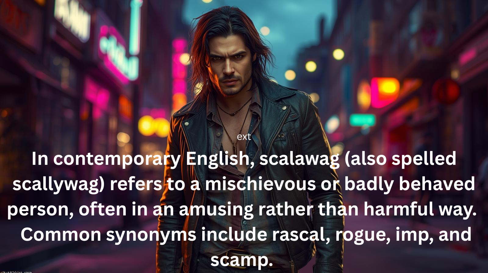In contemporary English, scalawag (also spelled scallywag) refers to a mischievous or badly behaved person, often in an amusing rather than harmful way.