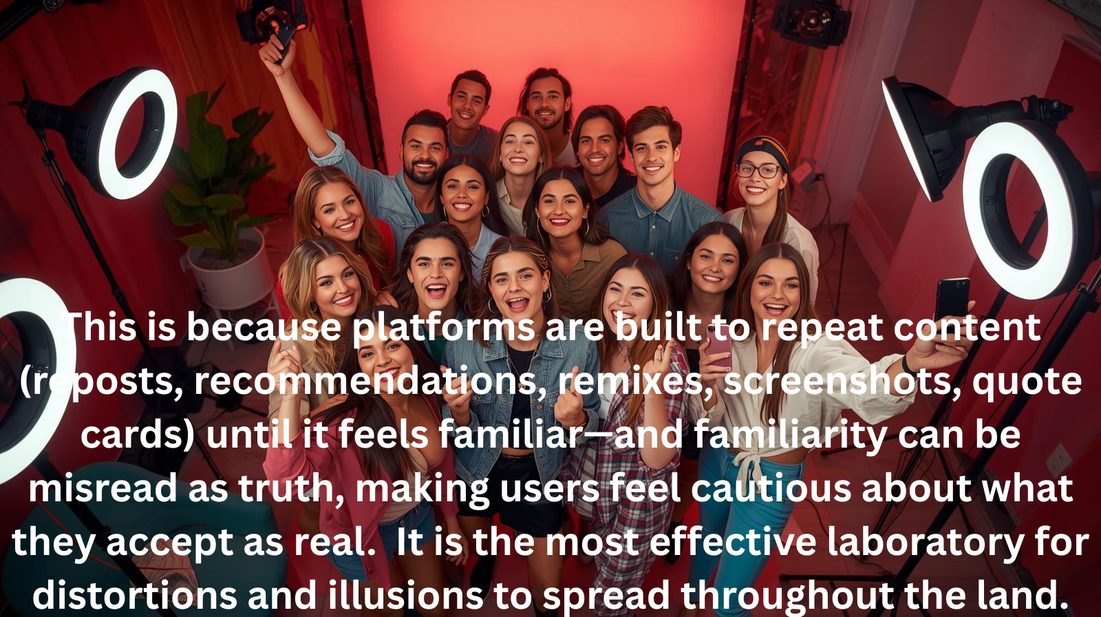Even if you don’t follow a topic, recommendation systems can repeatedly show you similar claims (across different accounts, same idea).