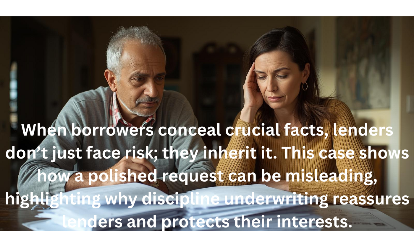 When borrowers conceal crucial facts, lenders don’t just face risk; they inherit it. This case demonstrates that a polished request can be misleading, underscoring why discipline underwriting reassures lenders and protects their interests.