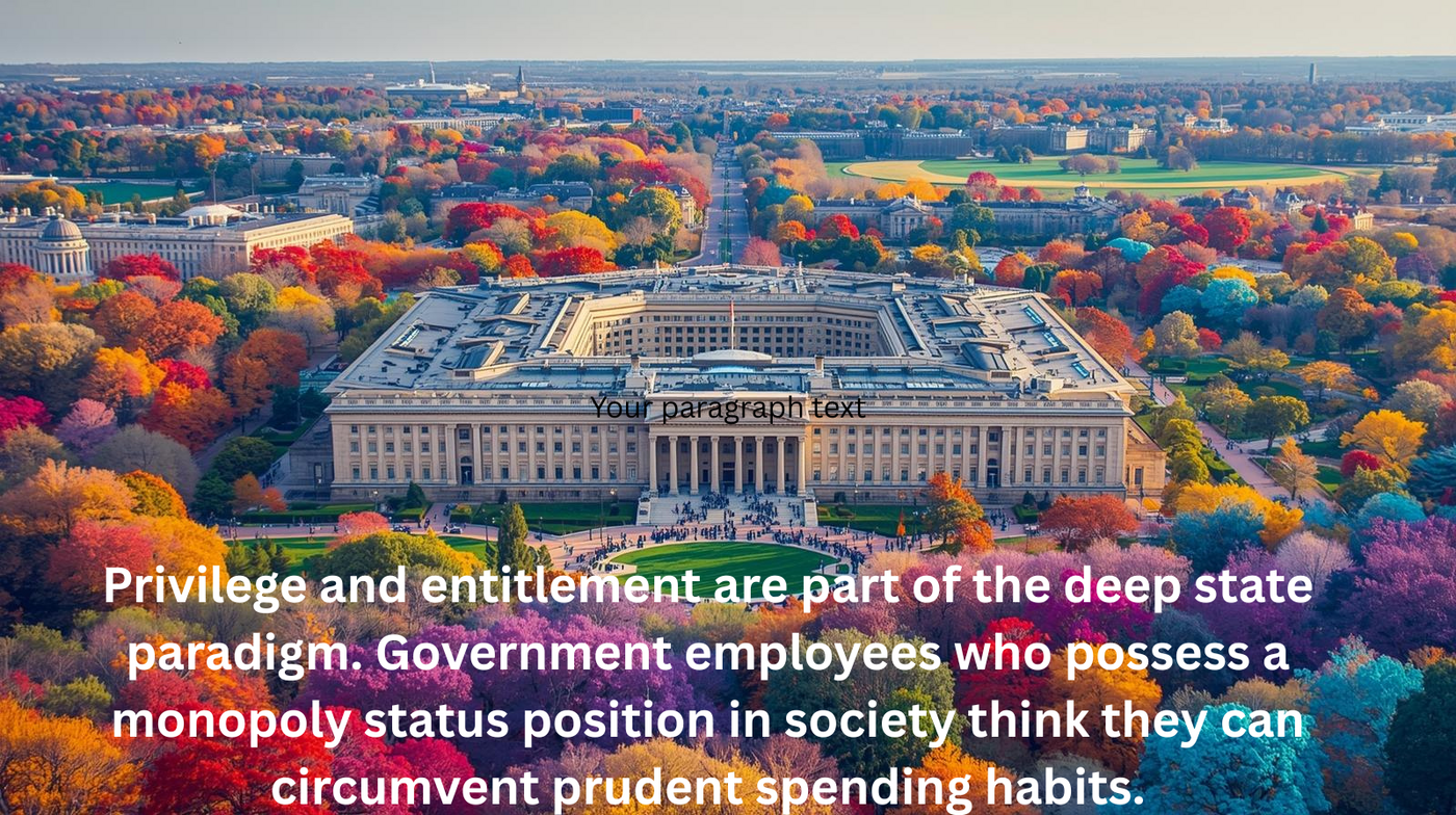Privilege and entitlement are part of the deep state paradigm. Government employees who possess a monopoly status position in society think they can circumvent prudent spending habits.