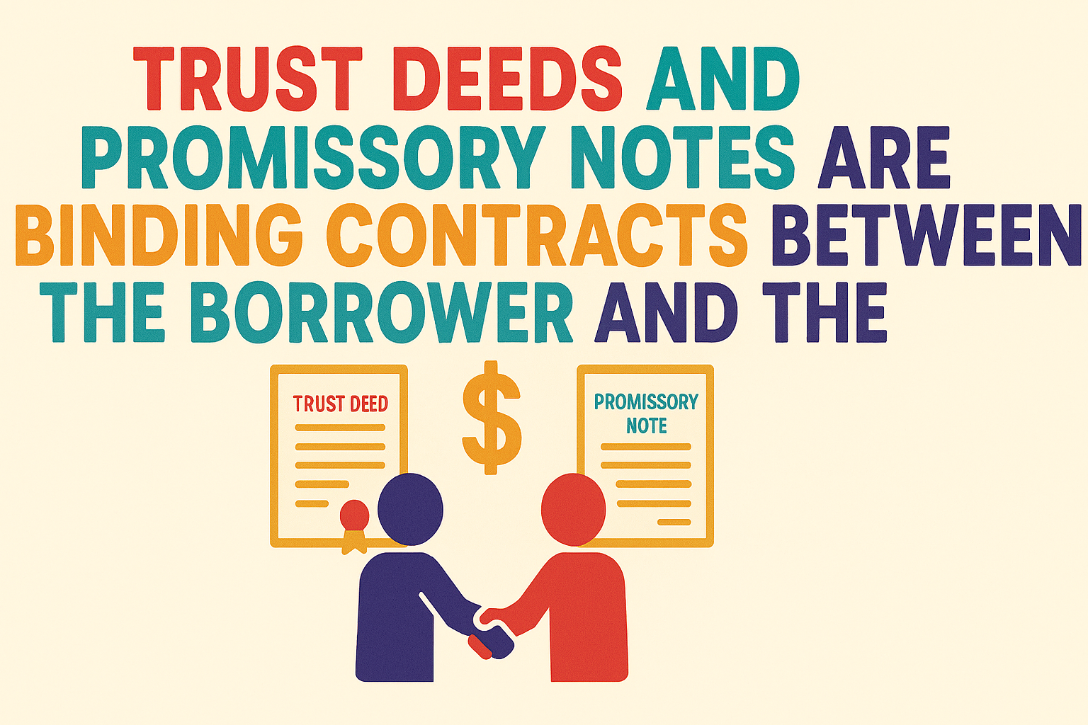 Legal documents, such as the executed promissory note and the security instrument called the deed of trust, are not just pieces of paper. They are binding contracts between the Borrower and private-party lenders, referred to as principals, not the broker.